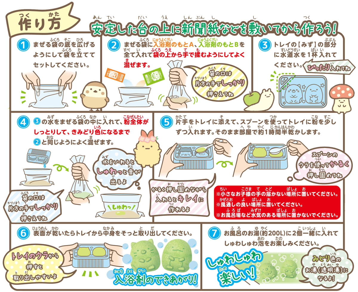 今回登場するのはは「すみっコぐらし」の「ねこ」と「とかげ」の形をした入浴剤が作れます☆