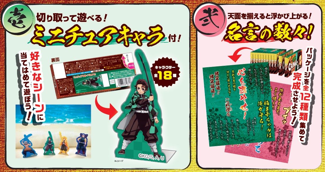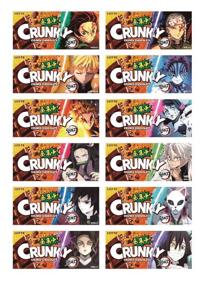 パッケージデザインは、「クランキー<鬼滅の刃デザイン>」と「クランキー<クッキー&クリーム>」のそれぞれに12種類展開。
