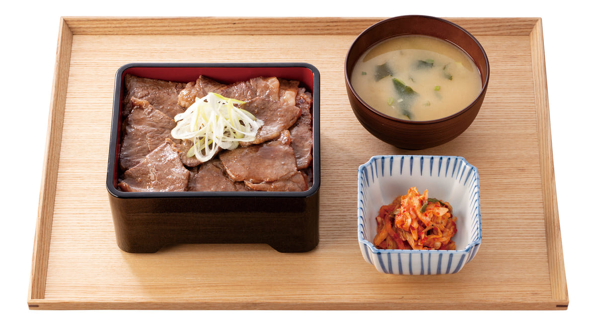 ご飯は、黒毛和牛とキムチのうま味でご飯が足りないという声をふまえ、牛丼並盛改め牛丼大盛と同量で提供。