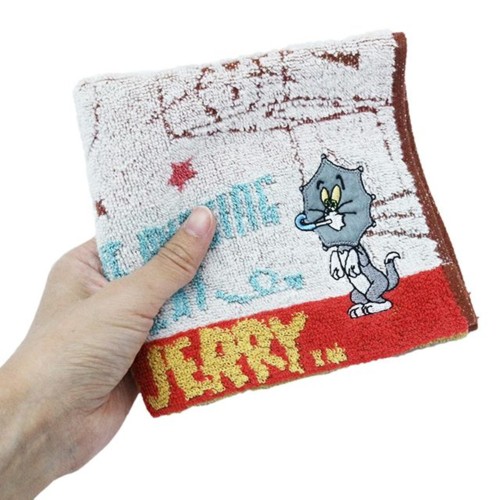 愉快なデザインの『トムとジェリー』のアップリケ刺繍タオル。