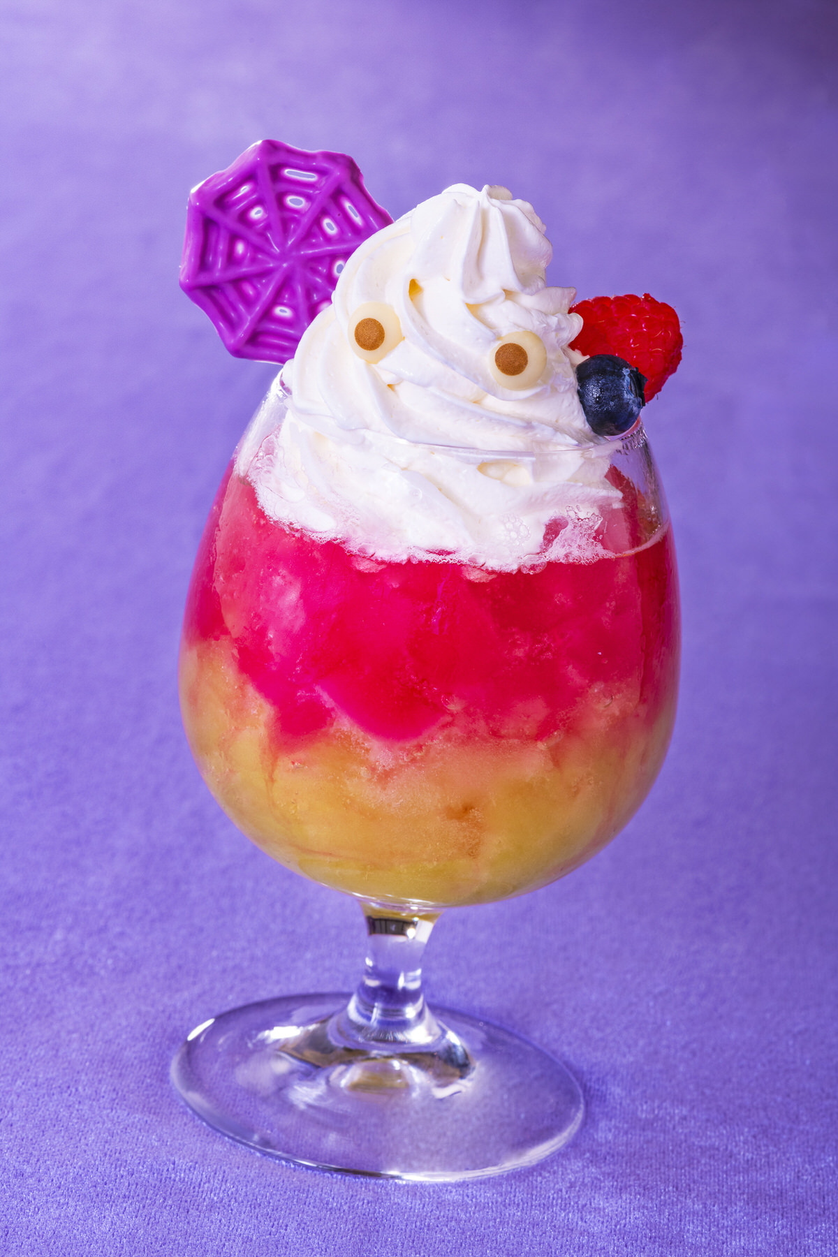 不気味なハロウィーンの夜をイメージした色合いのドリンク。