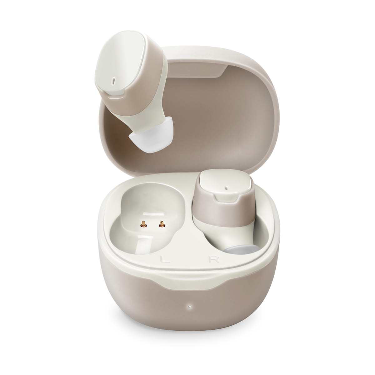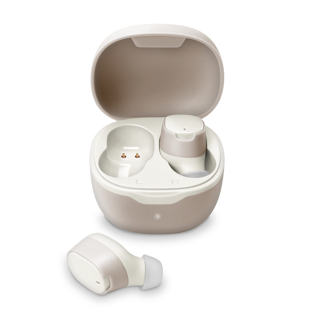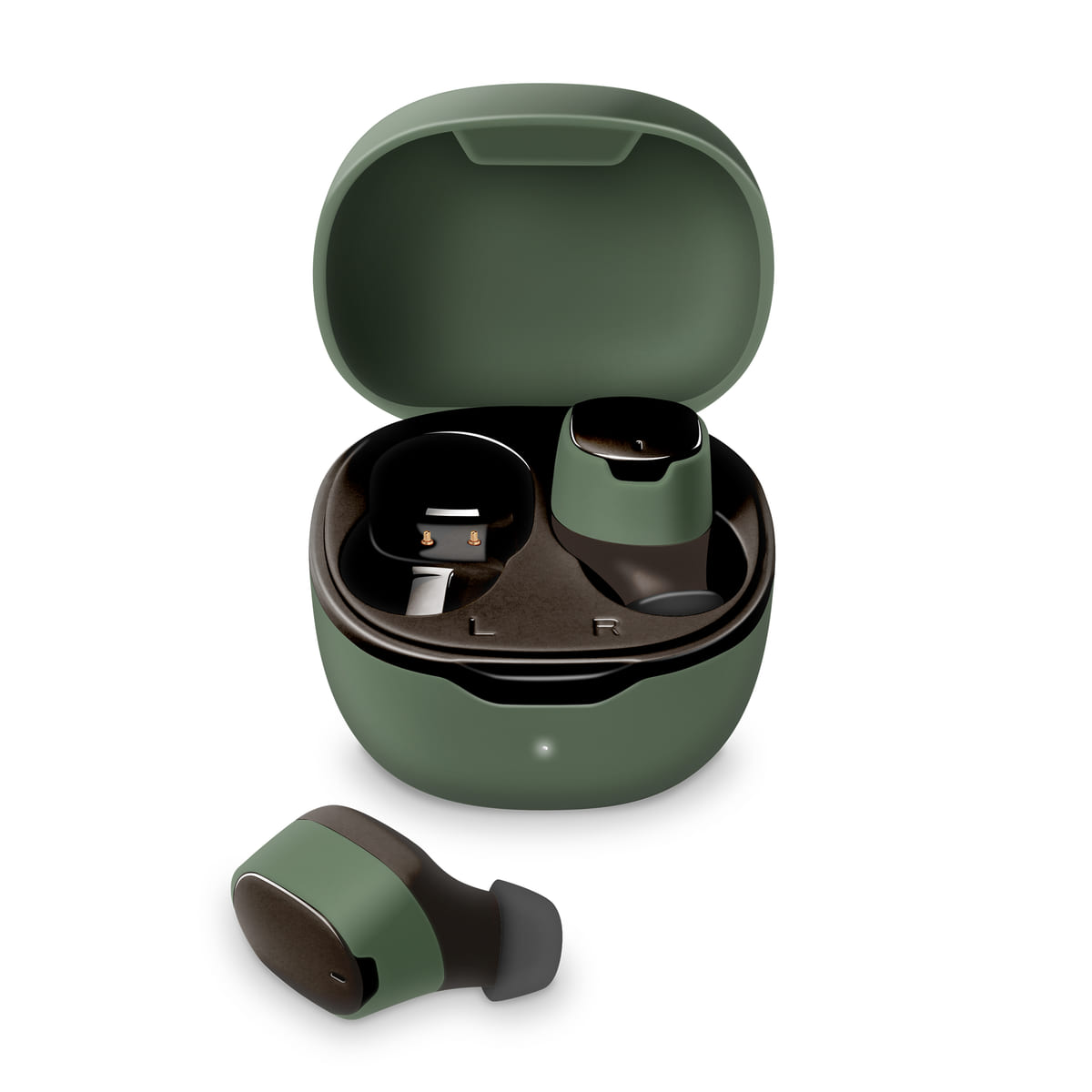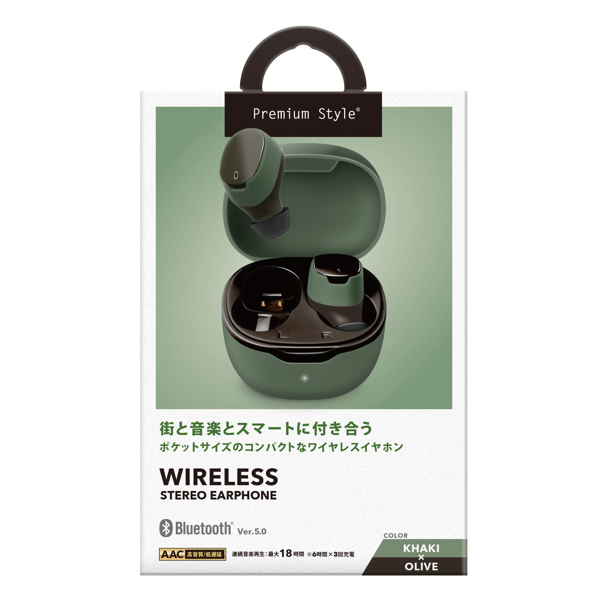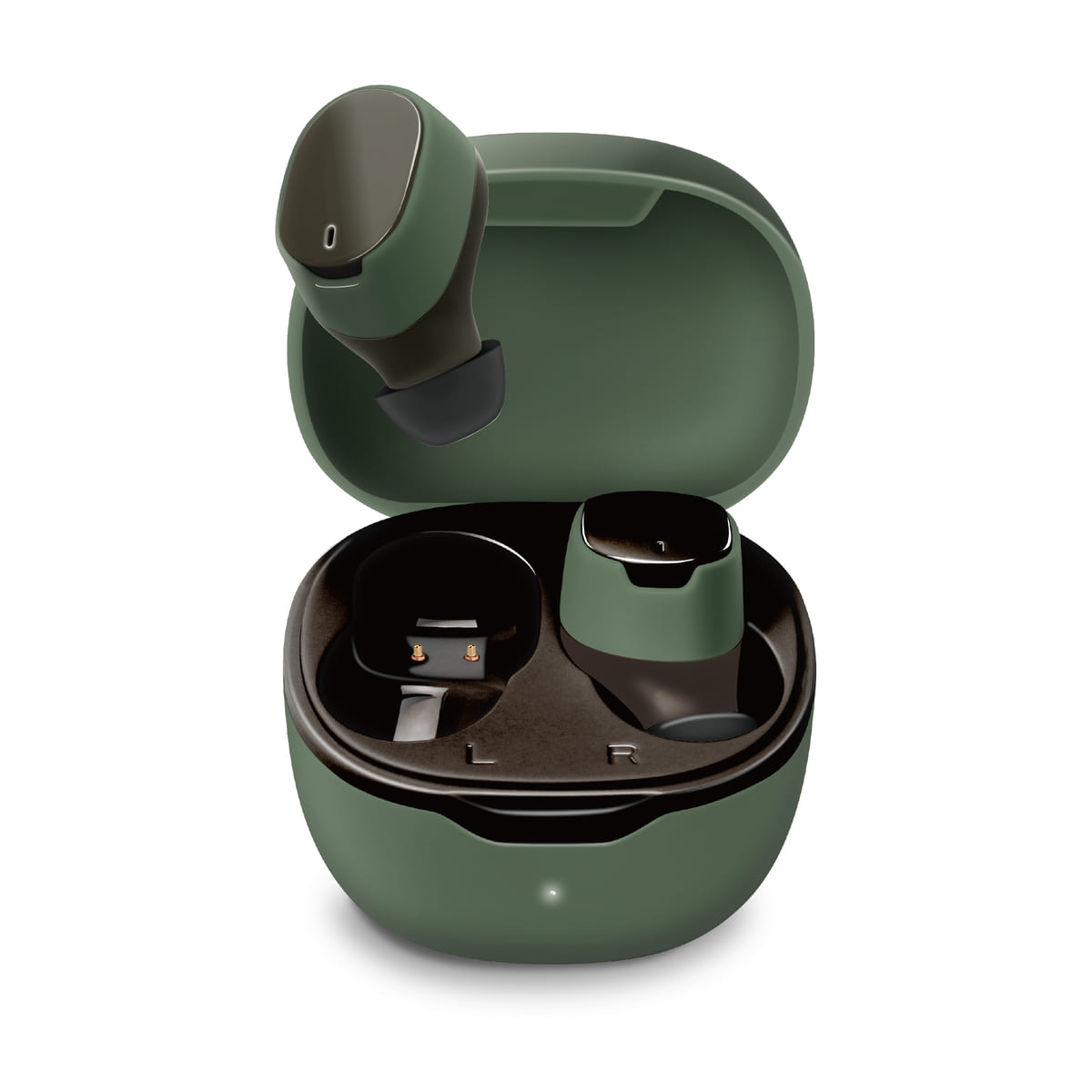 カジュアルに使える、おしゃれなカーキ×オリーブのワイヤレスイヤホン。