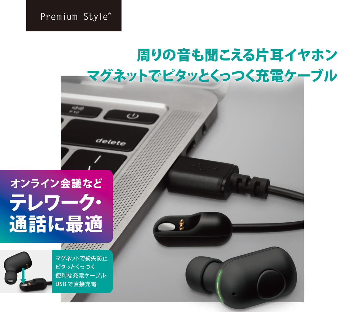 マグネット接続で充電できる、「片耳ワイヤレスイヤホン」