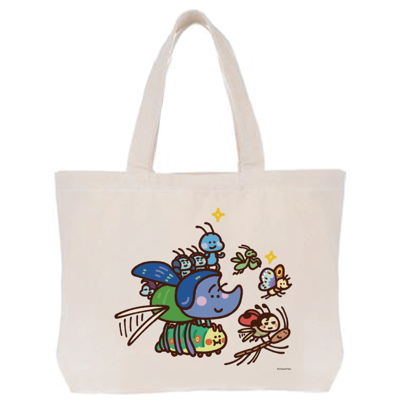 1998年公開の映画『バグズ・ライフ』のキャラクターたちがたっぷりプリントされたトートバッグ。
