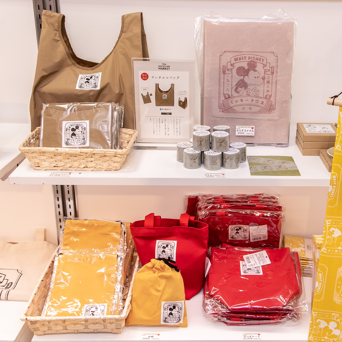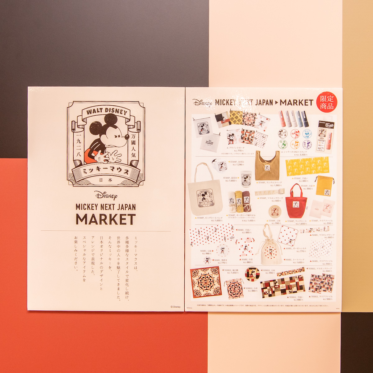 「ミッキーマウス」がデビューした1929年当時の日本(昭和4年)を彷彿とさせるアートを使用した限定グッズが多数ラインラインナップ。