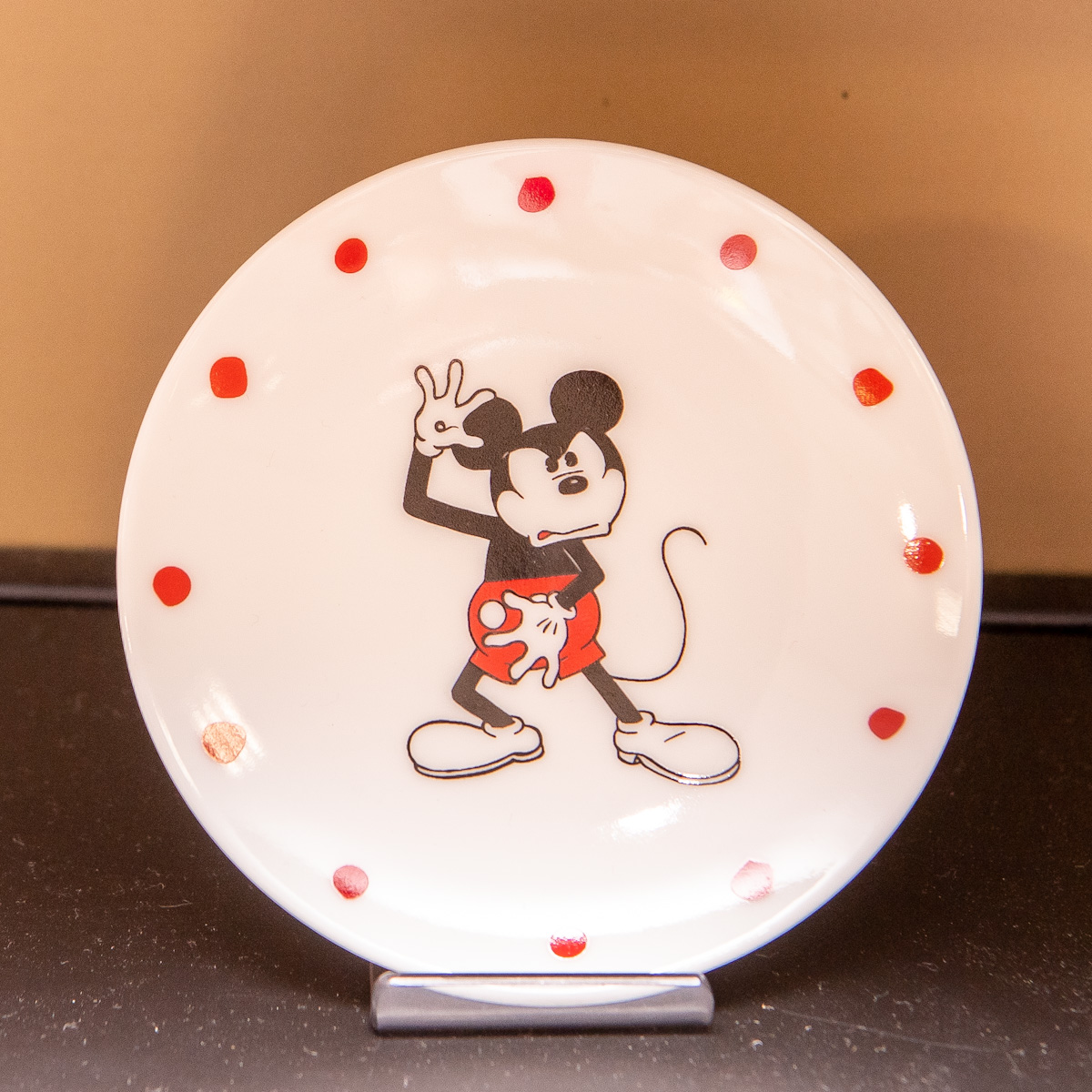 「ミッキーマウス」が大胆にレイアウトさ絵れた豆皿。