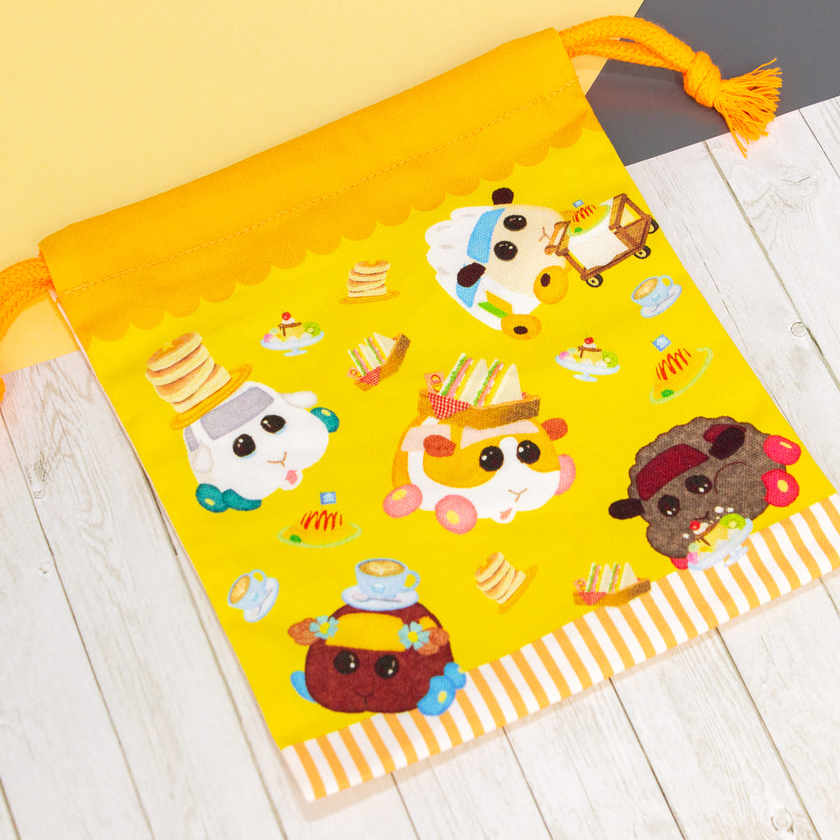 カラフルな配色がアクセントになった、ガーリーな巾着です。