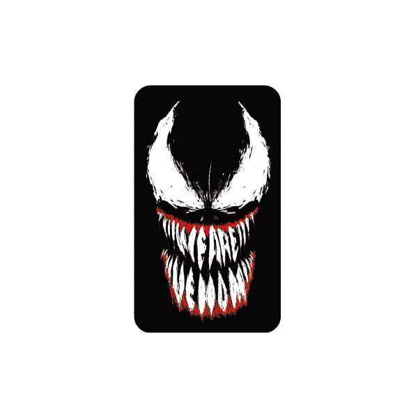 鋭い歯で「WE ARE VENOM」の英文が表現されている、クールなキャラクターステッカーです。
