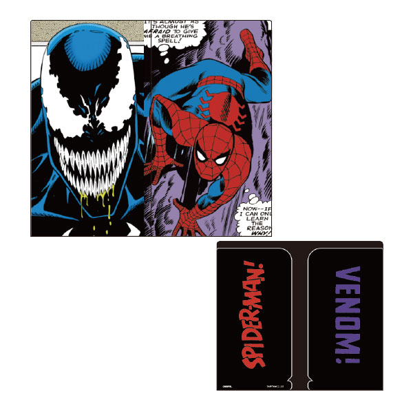 「スパイダーマン&ヴェノム」のデザインは、外側に宿敵であるふたりのコミック風アートを使用。