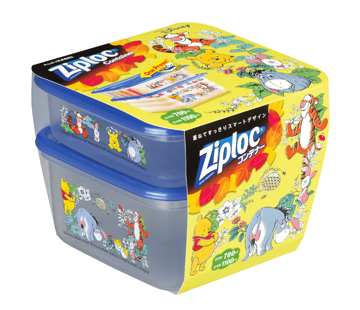 02ジップロック コンテナー 正方形700ml&1100ml 各1個入『くまのプーさん』2021