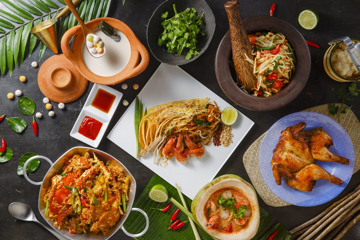 また、タイ料理に欠かせない“タマリンドソース”をかけたサーモンのロースト、定番人気のタイ風焼きそば「パッタイ」、カニの旨味をぎゅっと閉じ込めた「プーパッポンカレー」など、タイフードがフルラインナップ!