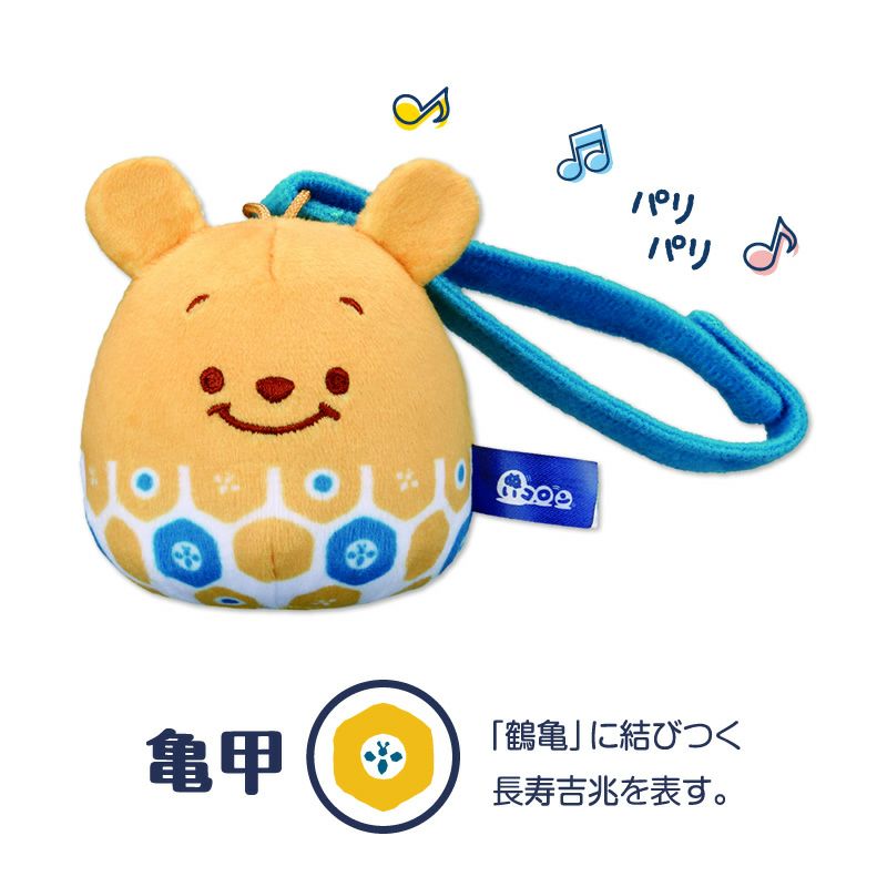 「鶴亀」に結びつく長寿吉兆を表した亀甲の中心に、ミツバチのシルエットが入るなど、『くまのプーさん』らしい仕上がりです☆