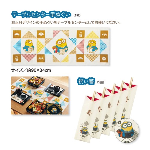 重箱には袴姿でお正月らしい「ボブ」「ケビン」「スチュアート」などが描かれています。