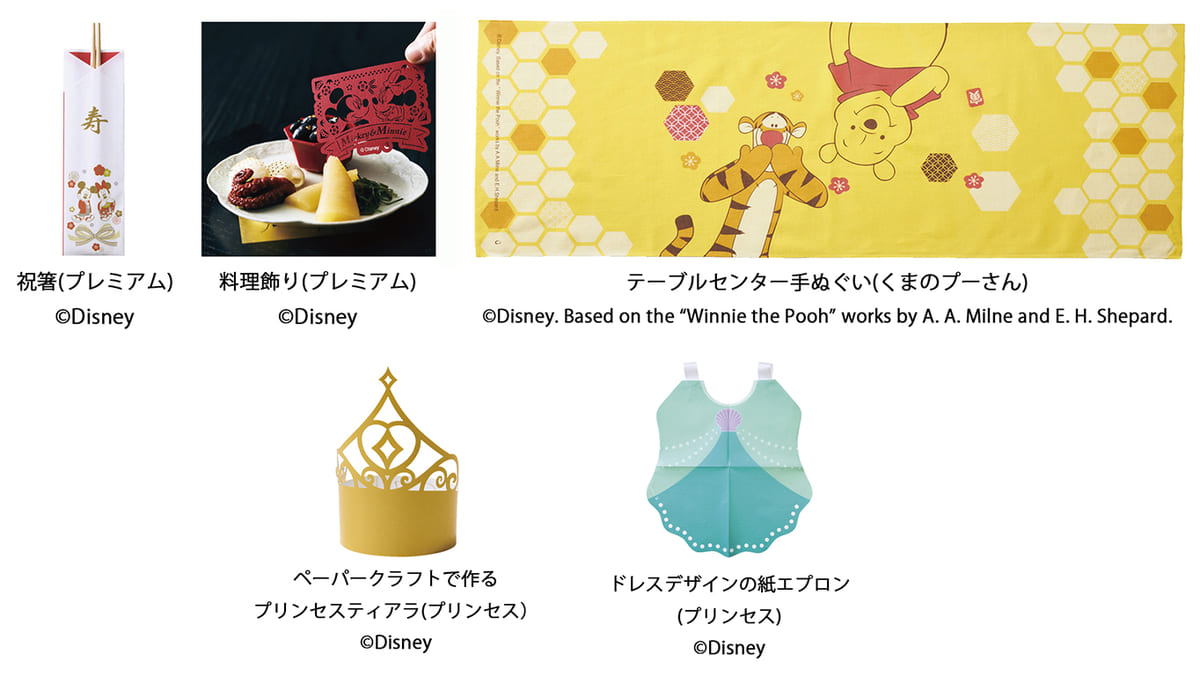 さらに『おせち・特段重「プリンセス」』限定で、ペーパークラフトで作るプリンセスティアラとドレスデザインの紙エプロンも!