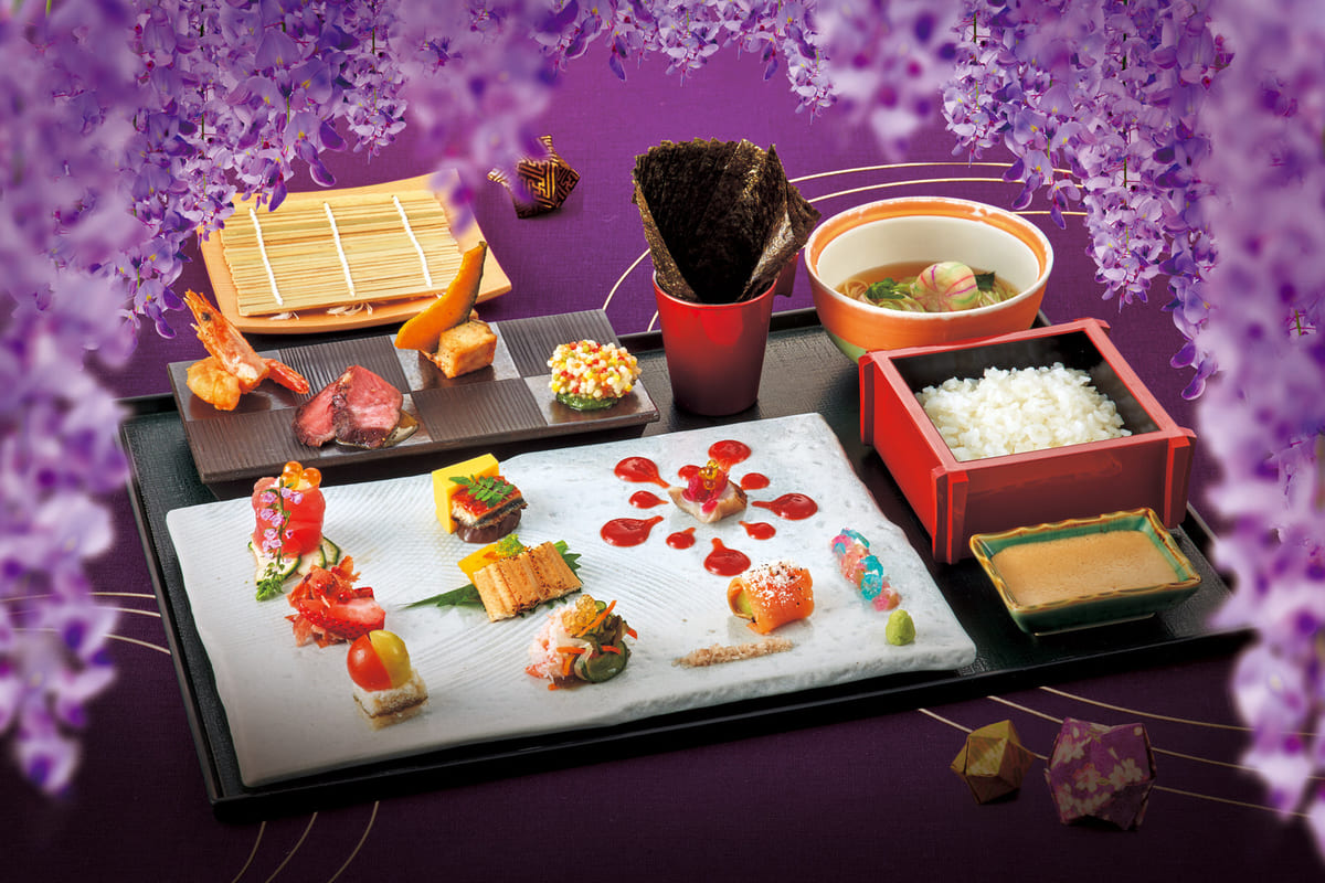 ユニバーサル・スタジオ・ジャパン「鬼滅の刃」テーマレストラン『藤の花の食事処』モダン寿司御膳(宇髄天元)