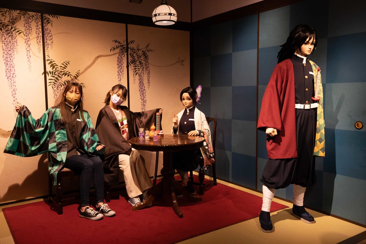 店内には肌も瞳も、まるで生きているかのようにリアルに再現されたクロノイドの「冨岡義勇」「胡蝶しのぶ」が登場します☆