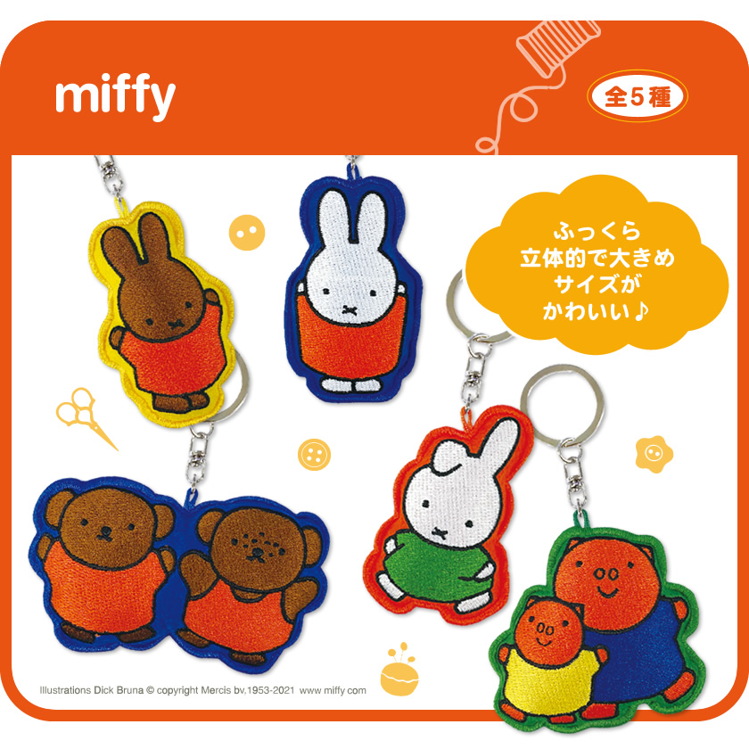 キュートなキャラクターグッズを展開するアイアップから、「ミッフィー」たちの刺繍マスコットキーチェーンが登場。