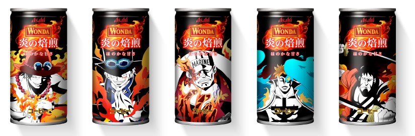 「ワンダ モーニングショット」缶185g、「ワンダ 金の微糖」缶185g、「ワンダ 極 ブラック」ボトル缶400g、「ワンダ 極 微糖」ボトル缶370g、「ワンダ 極 カフェオレ」ボトル缶370g、「ワンダ 炎の焙煎」缶185g、そして2021年9月14日発売の「ワンダ モーニングショットブラック」缶185gから、『ONE PIECE』のデザイン缶として、全44種類がラインナップします。