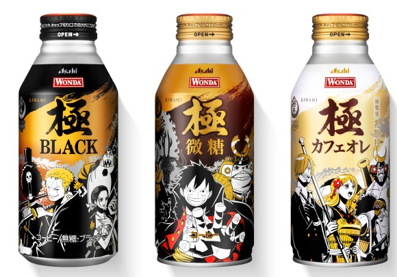 「ワンダ 極」のブラック、微糖、カフェオレは、「~麦わらの一味ワノ国編~」がテーマ。