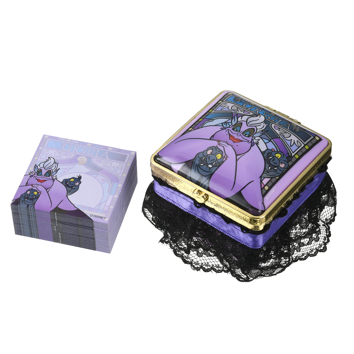 『リトル・マーメイド』に登場するディズニーヴィランズ「アースラ」と、手下の「フロットサム」「ジェットサム」が描かれたケース入りメモ。