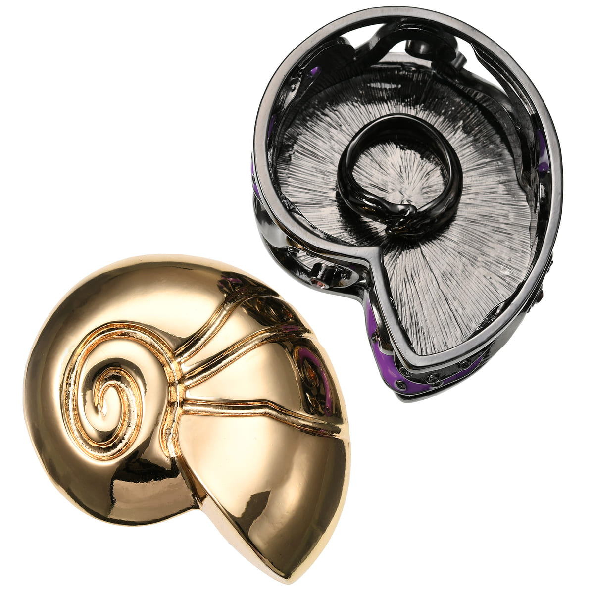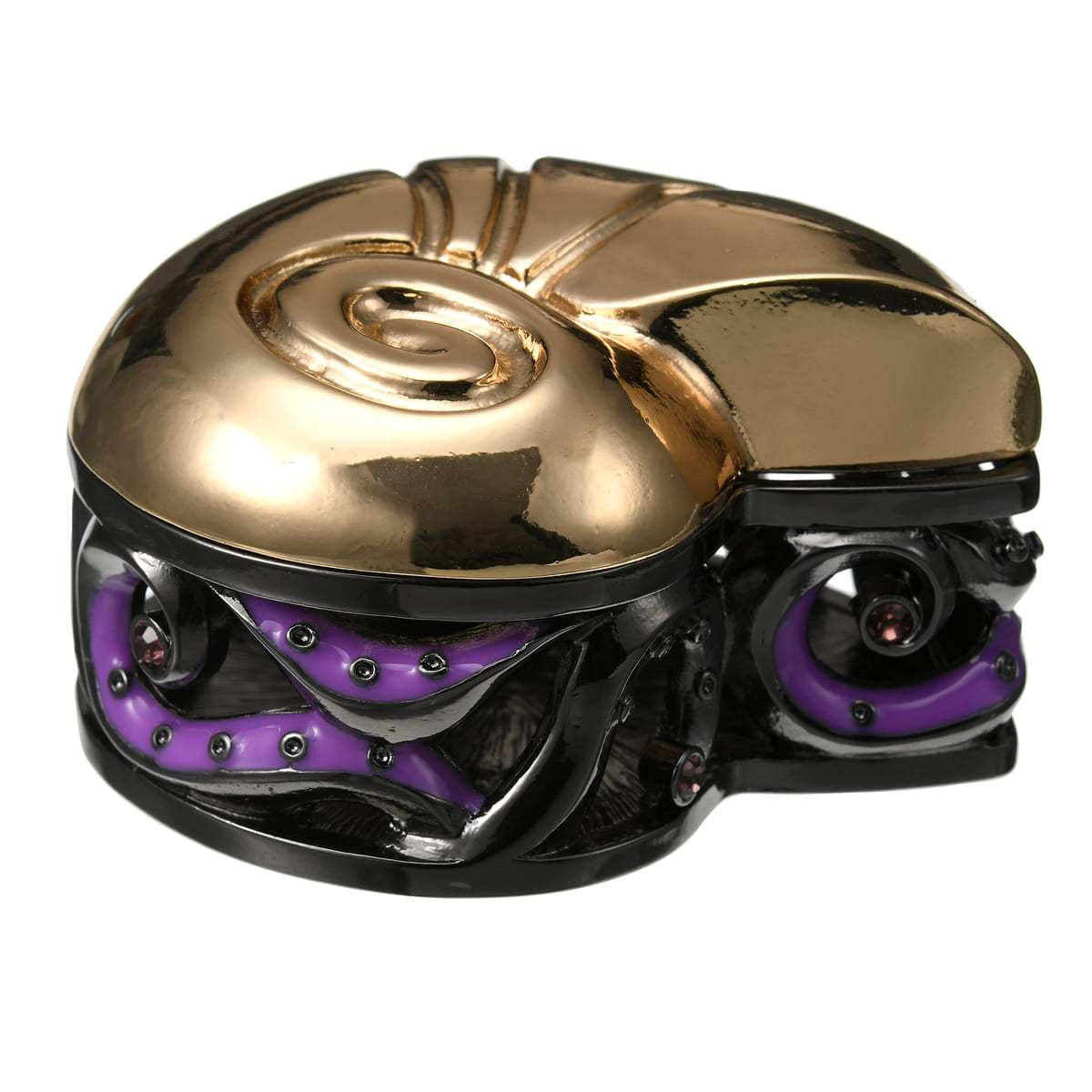 「アースラ」の象徴ともいえる巻貝をモチーフにしたリングケースは、ゴールドに輝く巻貝や紫色のラインストーンがゴージャスです。