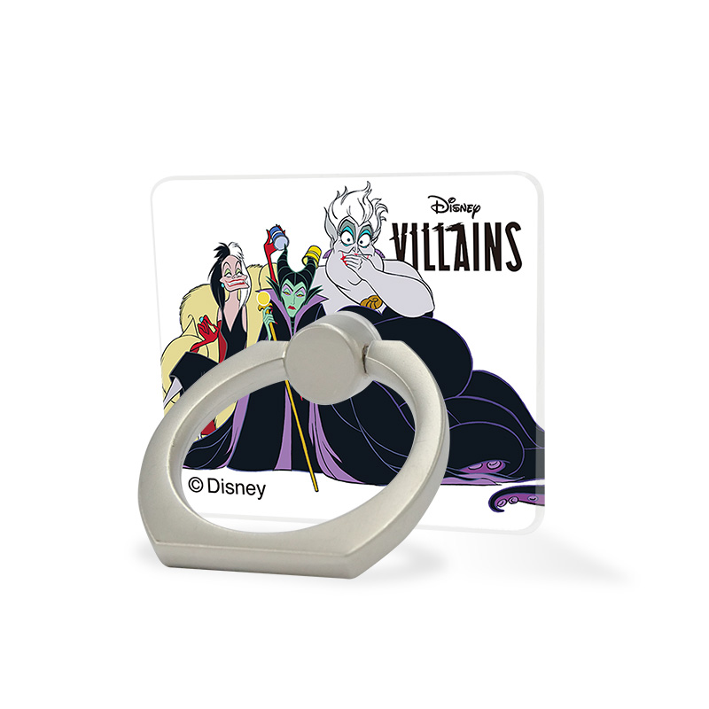 「クルエラ」や「マレフィセント」「アースラ」がプリントされたスマートフォンリング。
