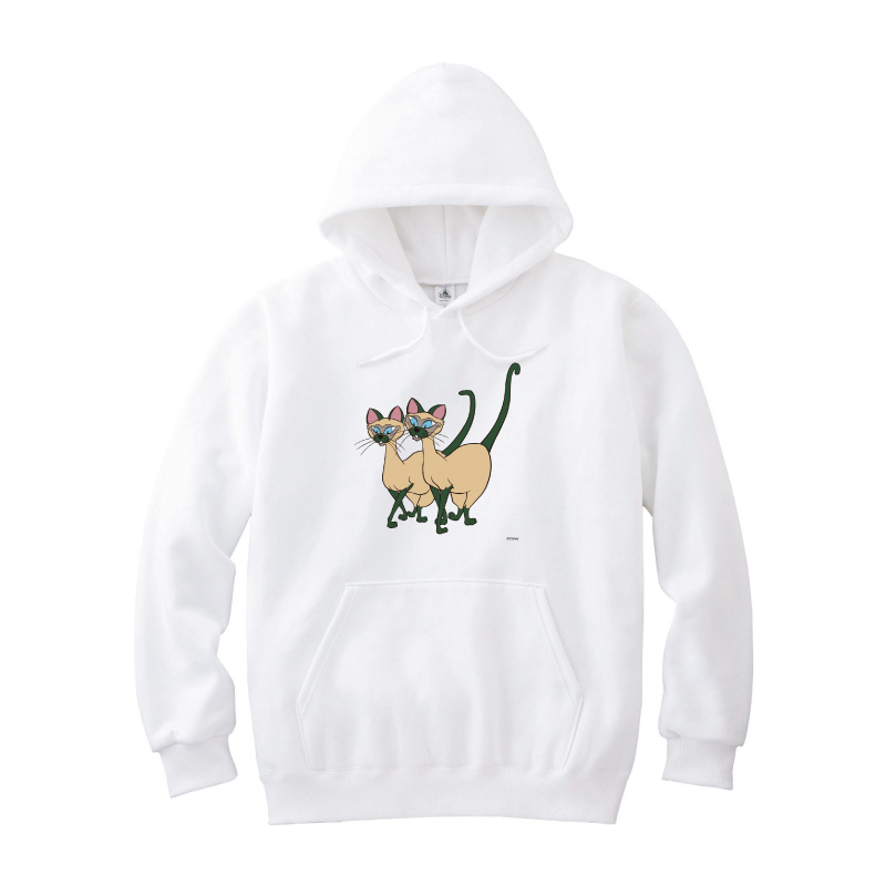 『わんわん物語』に登場するシャムネコのコンビ「サイ」と「アム」がプリントされたパーカー。