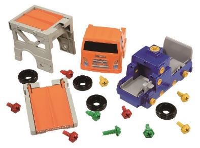 総パーツ24個と少ないパーツで簡単に、かつ赤・緑・黄の好きな色のねじを使って、キャリアカーと