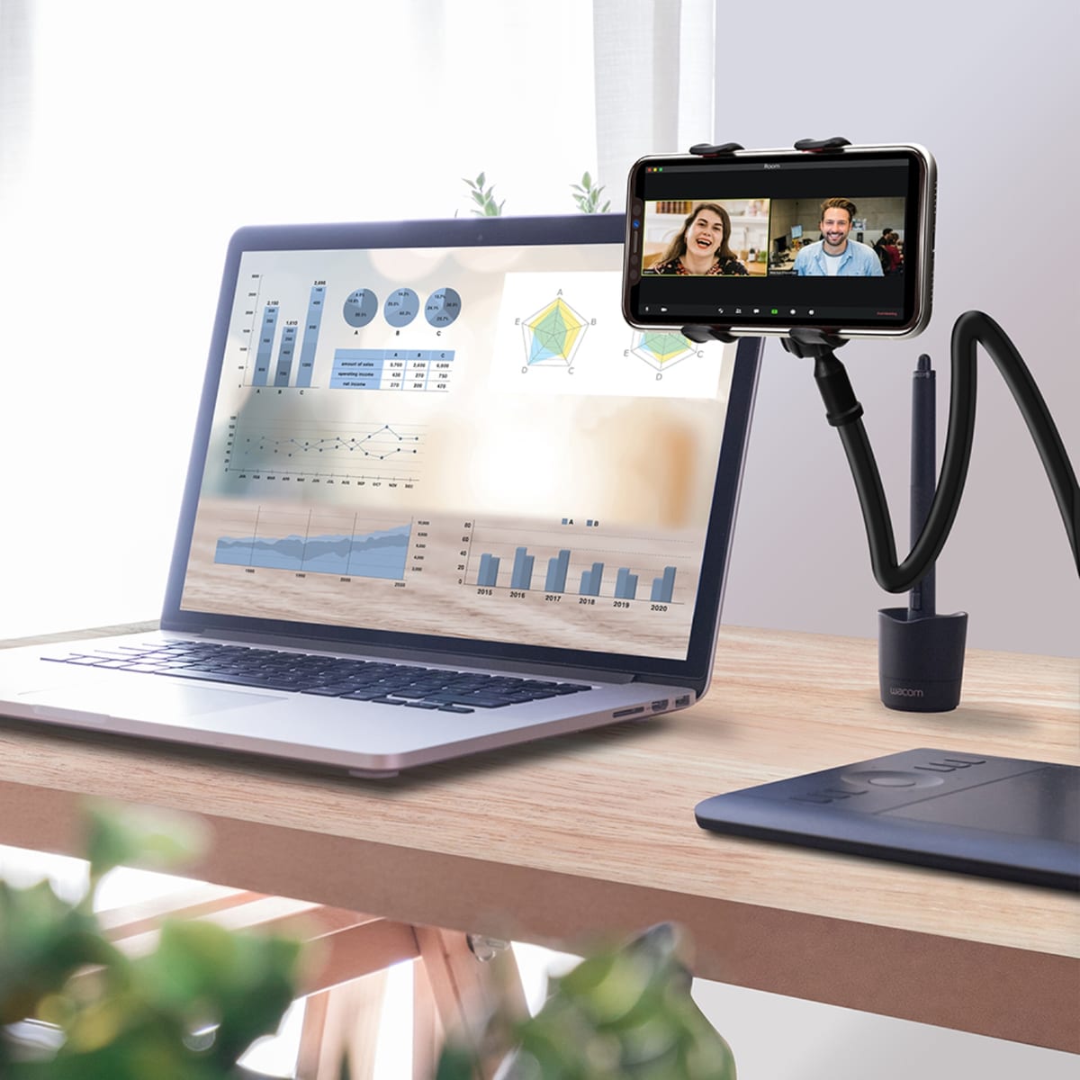 仕事はもちろん、リビングで動画を見たり、キッチンで料理レシピを見たりと、マルチに活躍するスマホグッズです☆