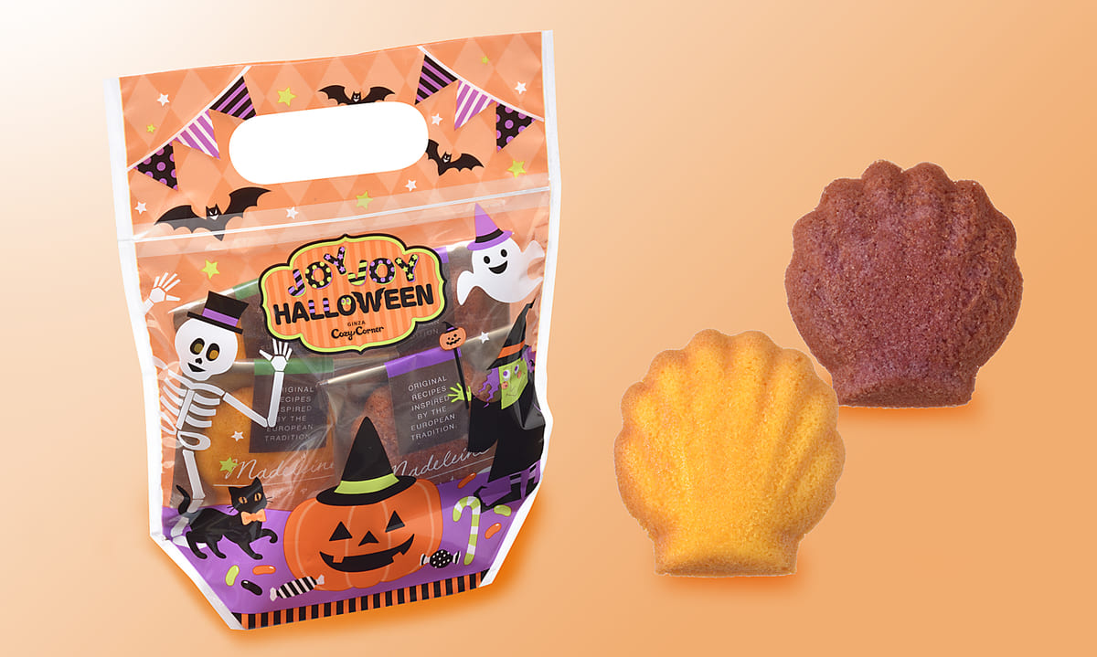 オバケがハロウィンパーティーをしている様子がデザインされた「JOYJOYハロウィン マドレーヌパック(4個入)」
