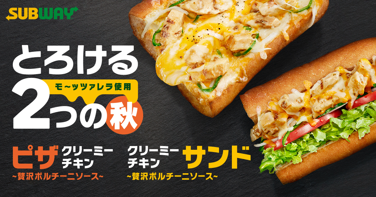 サンドイッチ・チェーン「サブウェイ」に、「クリーミーチキン サンド」と「ピザ クリーミーチキン ~贅沢ポルチーニソース~」の2種が、2021年9月15日(水)より期間限定で登場します。