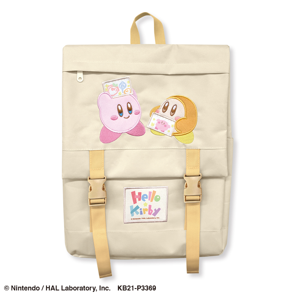 「カービィ」と「ワドルディ」のワッペン刺繍が大胆にあしらわれたリュックサック。