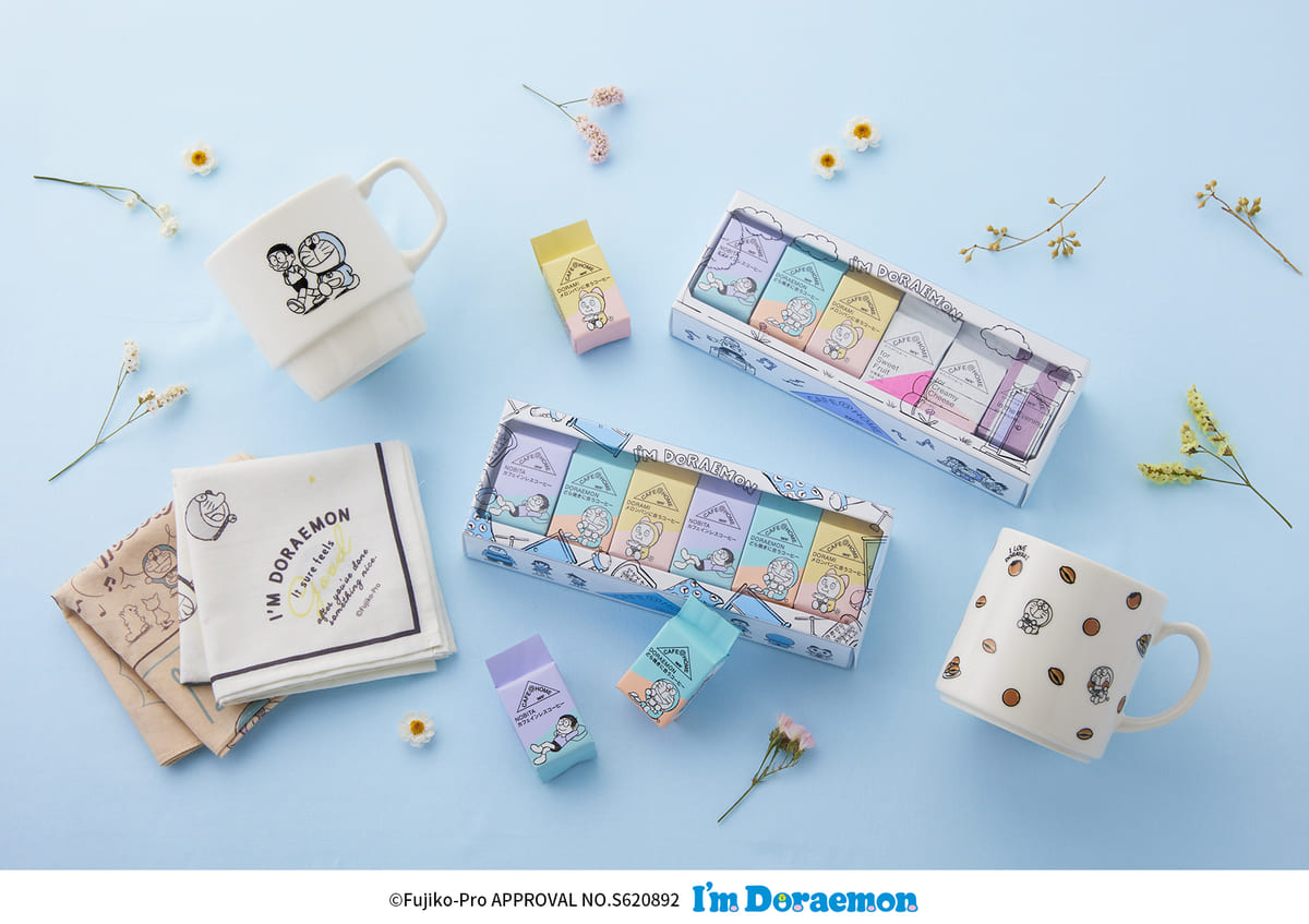 「ドラえもん」の大好きなどら焼き、「ドラミ」の好物”メロンパン”と合うコーヒーや、マグカップ、ハンカチなどがラインナップされます☆