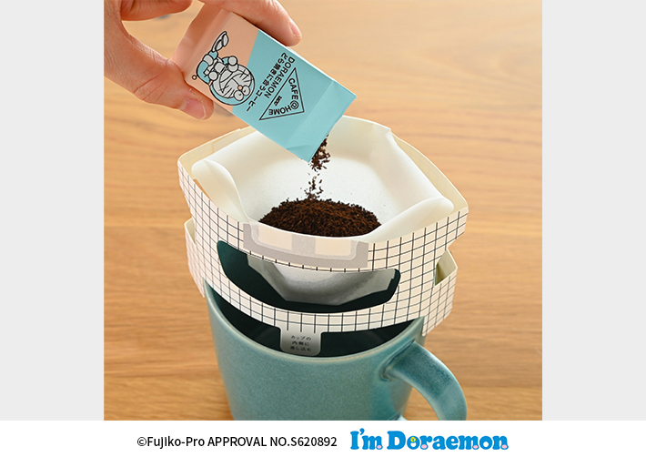 「ドラえもん」の好物である「どら焼き」に加えて、「ドラミ」の好物「メロンパン」に合うコーヒーや、寝ることが好きな「のび太」に合わせたカフェインレスコーヒーの3種類が展開されます。