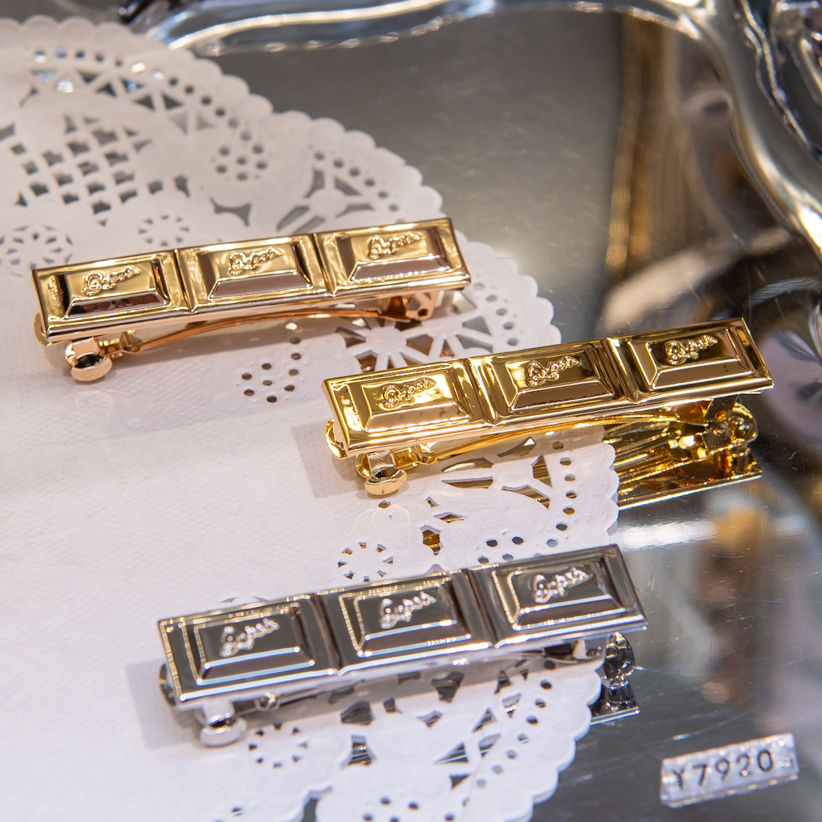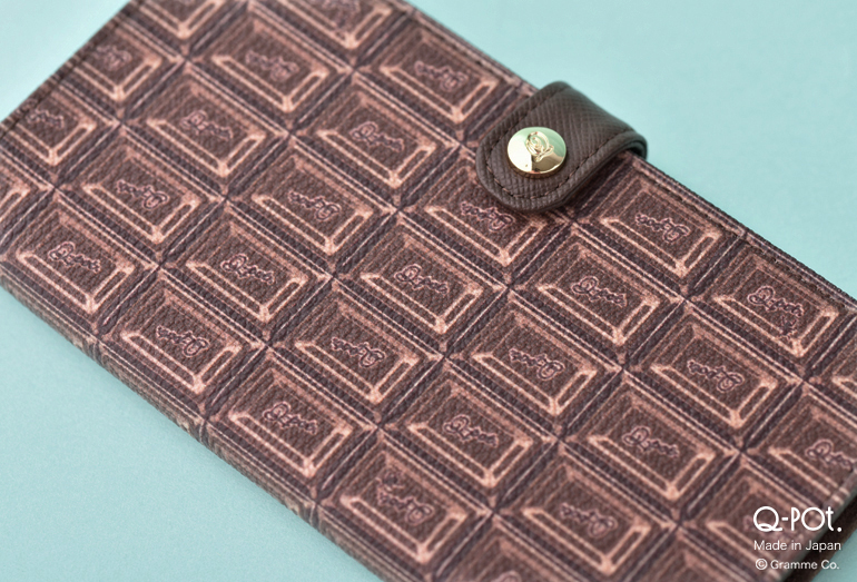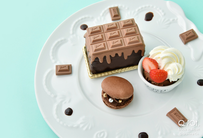 「Q-pot.」のロゴを刻印したタブレットチョコレートを並べたバレッタ。