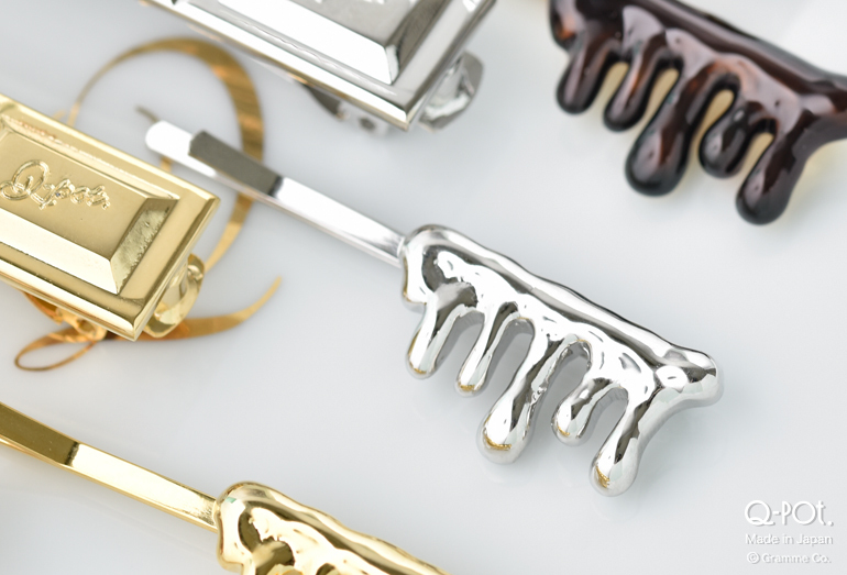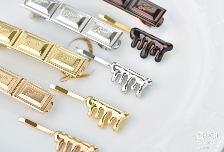 自然と笑顔が生まれる「CHOCOLATE」コレクションからは「Q-pot.」と深く刻まれたタブレットのリングとピアス、バレッタとヘアピンが登場します☆