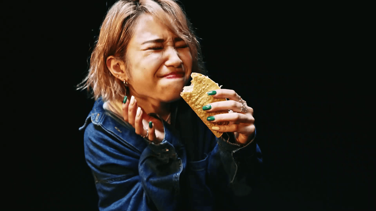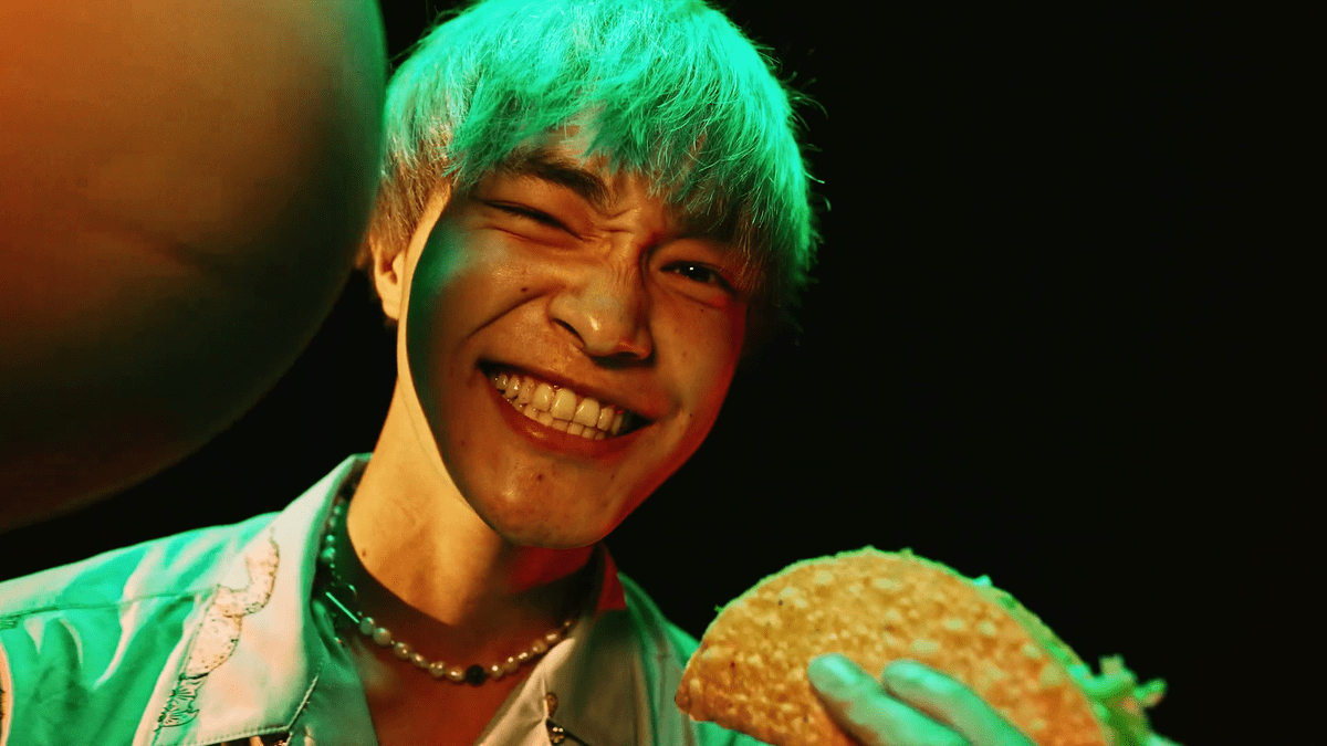 ナレーションや合間に挟まれる力強いパフォーマンスも、高揚感を掻き立て、タコスを豪快にかじりつく姿も必見。
