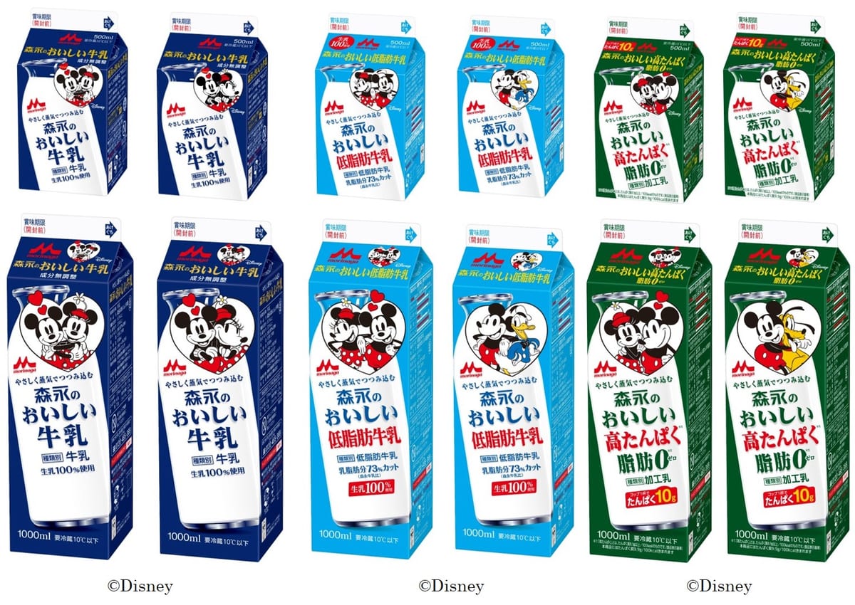 「森永のおいしい牛乳」と「森永のおいしい低脂肪牛乳」「森永のおいしい高たんぱく脂肪 0」の3シリーズからディズニーパッケージが登場です☆