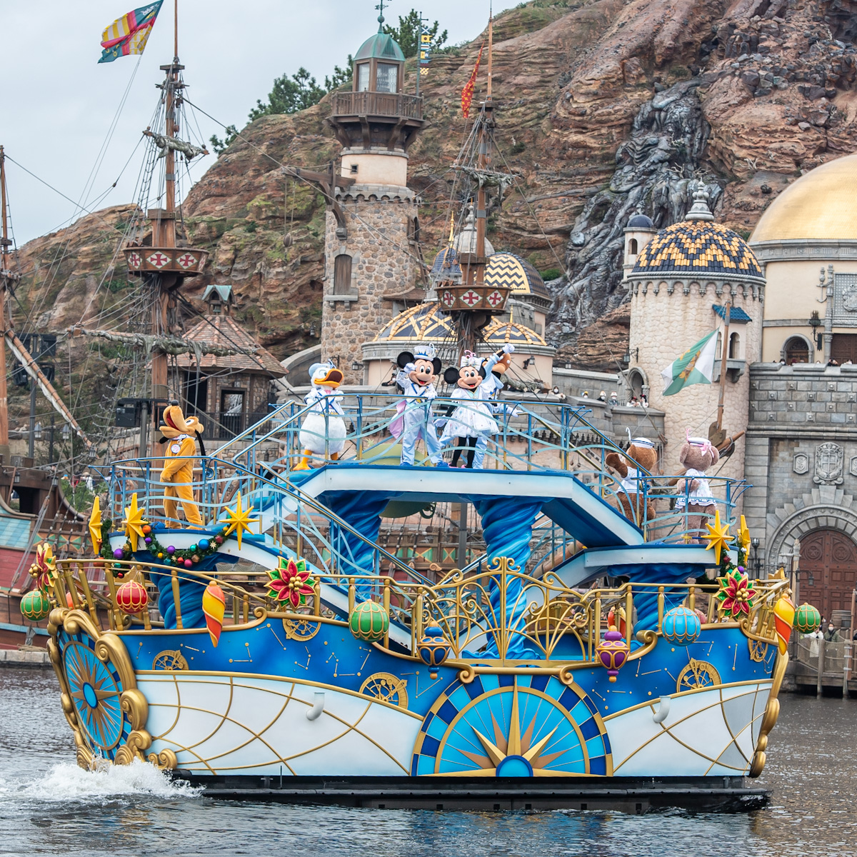 20周年ならではのコスチュームに身を包んだ「ミッキーマウス」やディズニーの仲間たちが船に乗って登場し、ゲストにご挨拶をしてくれます☆
