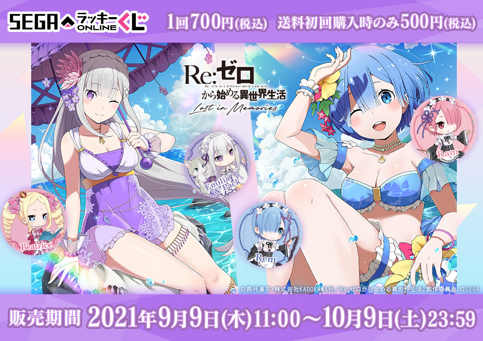セガ ラッキーくじオンラインにて2021年9月9日11時から10月9日までの期間限定で販売される『Re:ゼロから始める異世界生活 Lost in Memories』の紹介でした☆