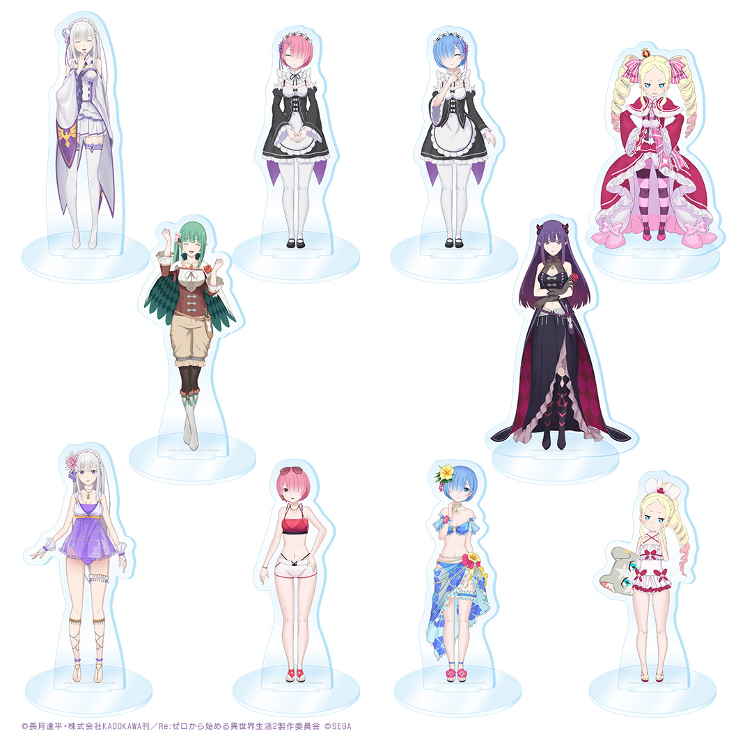 ラインナップ:エミリア、ラム、レム、ベアトリス、シオン、ライラ、エミリア 水着、ラム 水着、レム 水着、ベアトリス 水着