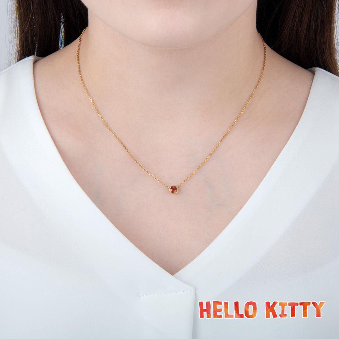 「ハローキティ」をイメージした赤い宝石「ガーネット」を使用した一粒石ネックレス。