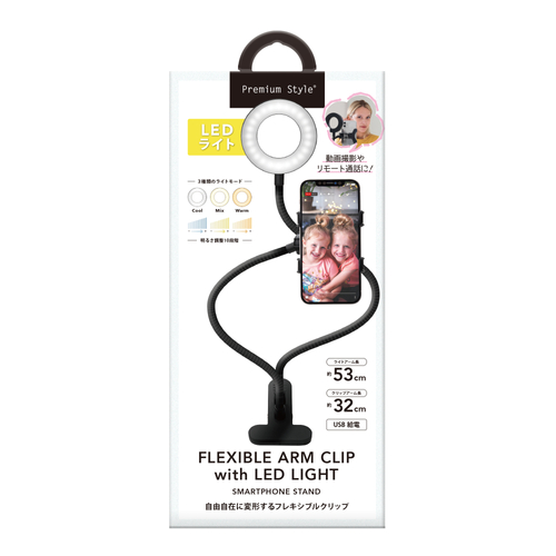 スマートフォンやデジタルオーディオ端末等のアクセサリーブランド『Premium Style』より、「LEDライト付き フレキシブルアームクリップ」が登場!