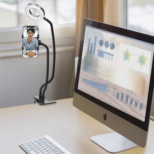オンライン会議や動画撮影に最適!PGA Premium Style「LEDライト付き フレキシブルアームクリップ」