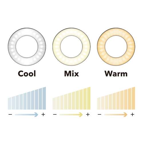 オフィスや細かい作業をする時にぴったりの、青みがかって白く光る「Cool」モード、どんな部屋にもマッチする自然な光の「Mix」モード、落ち着いた雰囲気になる暖色カラーの「Warm」モードを選べます。