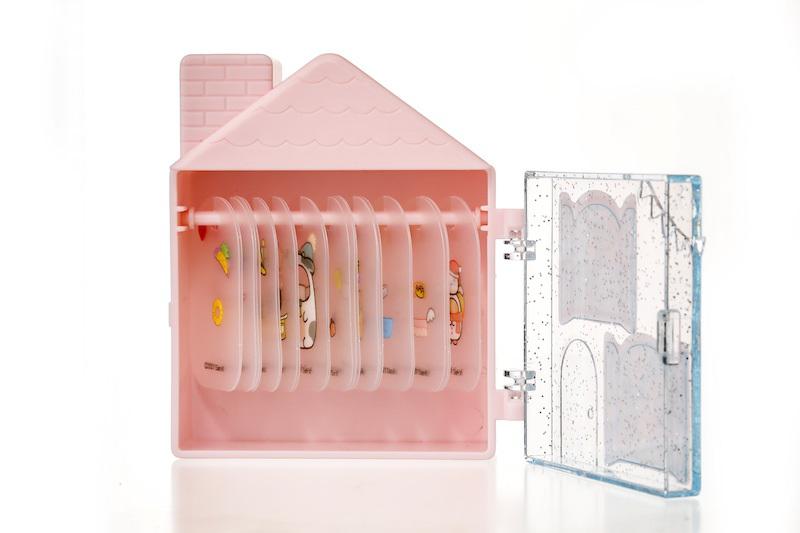 本の中には、「すみっコ」たちのきせかえシートが40枚、すみっコカードが15枚、きせかえシートをお洋服のようにかけてしまえるきせかえハウス、「すみっコハウス」「たぴおかパーク」2種類のはいけいシート、プラスチックスタンド2個、ペーパースタンド8枚を封入。