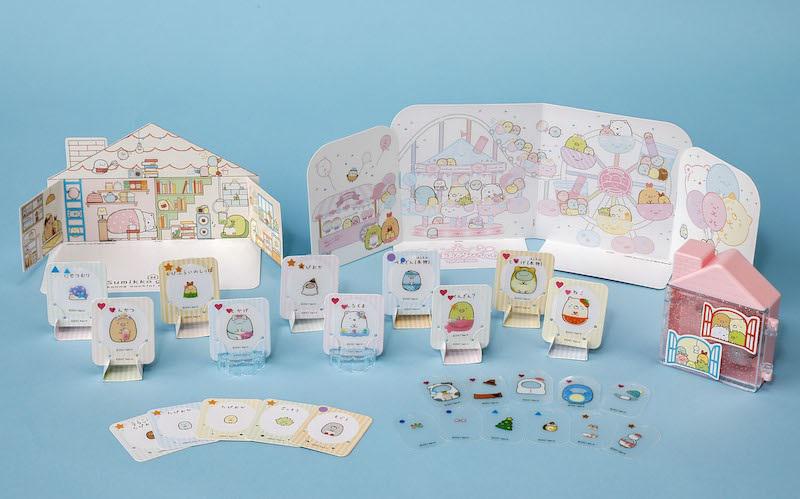 セット内容:きせかえハウス、きせかえハウス用シール、きせかえシート 40枚、すみっコカード 15枚、はいけいシート(たぴおかパーク/すみっコハウス)、キャラクタースタンド プラスチックスタンド2個、ペーパースタンド8枚