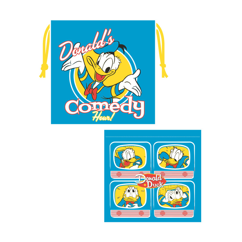 オモテ面にはロゴ、ウラ面にはレトロなテレビ画面に映った「ドナルドダック」を並べた遊び心あふれる「巾着」です。