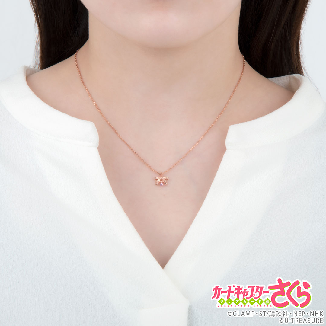 「カードキャプターさくら クリアカード編」のメインビジュアルで使用されている、ピンクのバトルコスチュームがモチーフになったネックレス。