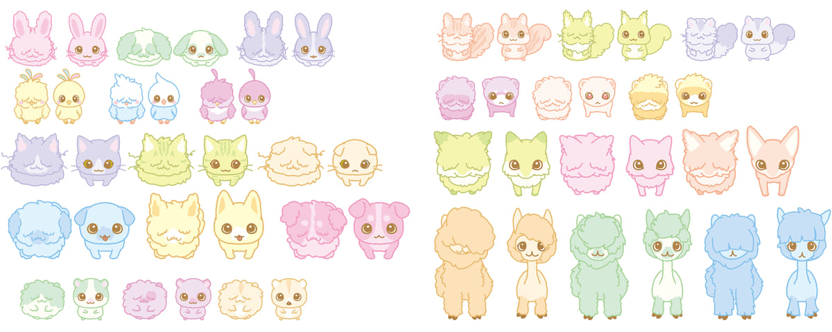 ぼさうさ、ぼさいぬ、ぼさとり、ぼさねこ、ぼさはむすたー、ぼさりす、ぼさふぇれっと、ぼさきつね、ぼさふぇねっく、ぼさあるぱかなど、動物の種類と同様に「ぼさにまる」の種族はたくさん!